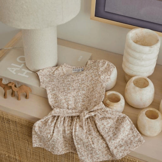 Dirkje Mädchenkleid – Sommerlich mit Blumenmuster (Beige)