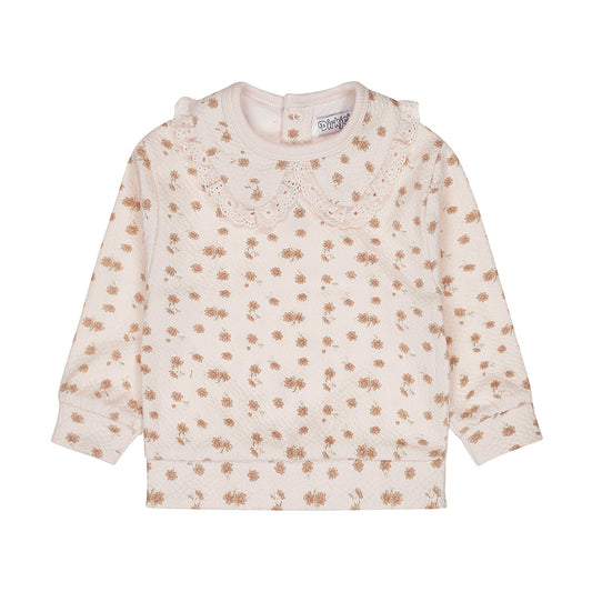 Dirkje Mädchen Pullover – Hellrosa mit Blümchen & Kragen